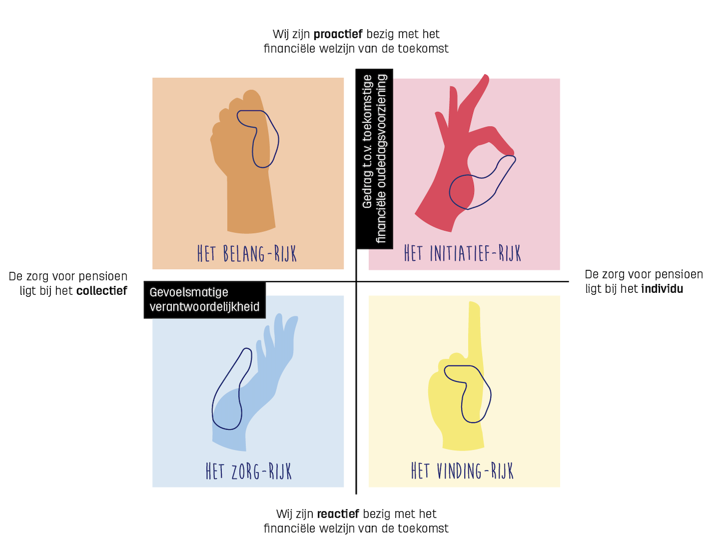 Niet zzp’ers zien dat de zzp’ers een reactieve houding hebben t.o.v. het pensioen en vinden dat zij ontlast moeten worden in de zorg voor hun pensioen en stemden daarom op het Zorg-rijk of het Vinding-rijk.
